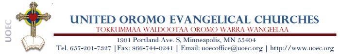 The Board of the United Oromo Evangelical Churches, on behalf of its member churches around the World, is sending its urgent appeal to you and all fair minded people of good will, churches and other religious establishments, regimes, and other Human Rights organizations to urgently intervine on behalf of the young Oromo students and the households of students, and the small farmers being displaced and ask the Ethiopian government to:
