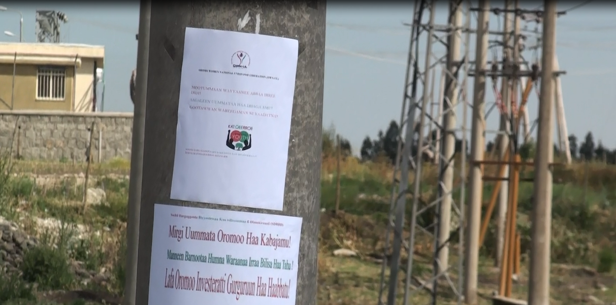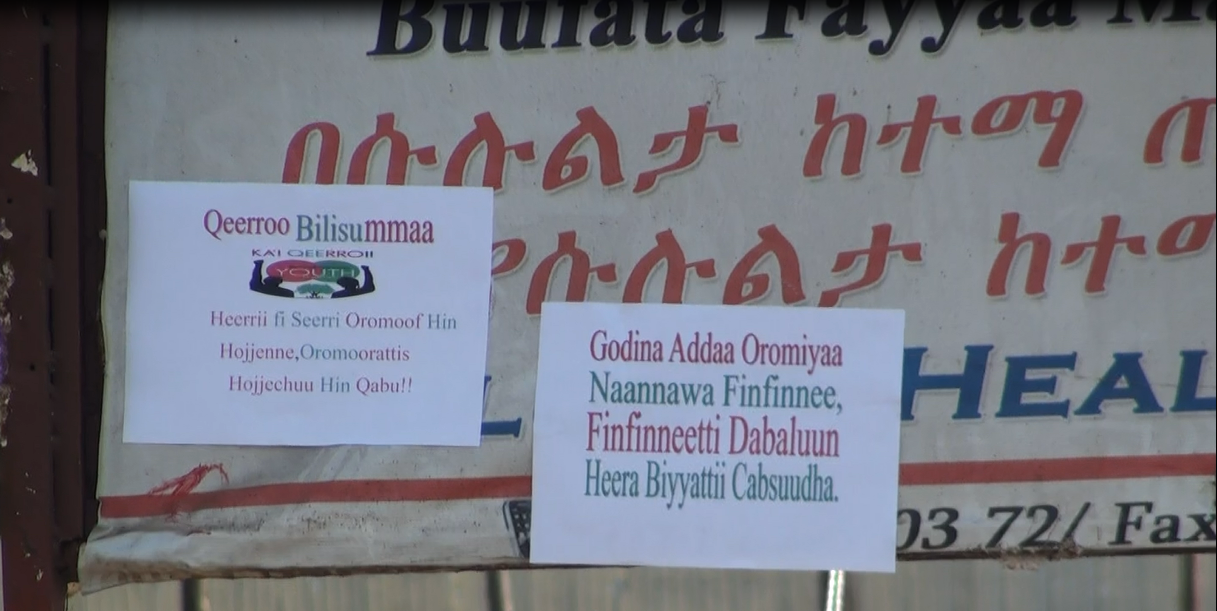 30/03/2016 halkaa alaaba Adda Bilisuma Oromoo ykn Oromiyaa lafaa gabaa qidamee keessatti mukaa ibsaa irratti bakkoota hedduutti fannifamee barruuleen warraaqsaa guutuu magaalaa keessatti raabsamuu fi maxxanfamuu irraa humni waraanaa about seene jechuun raafama keessa jiru.