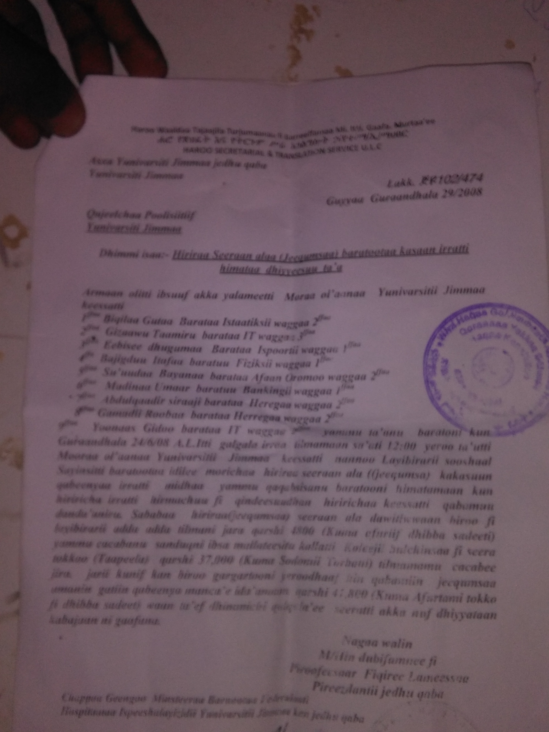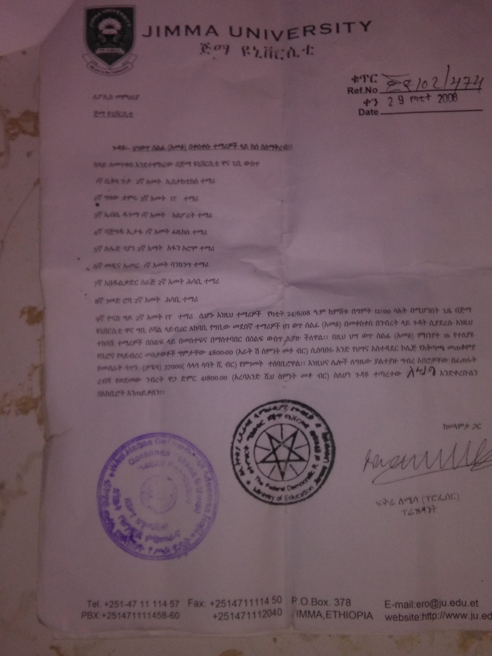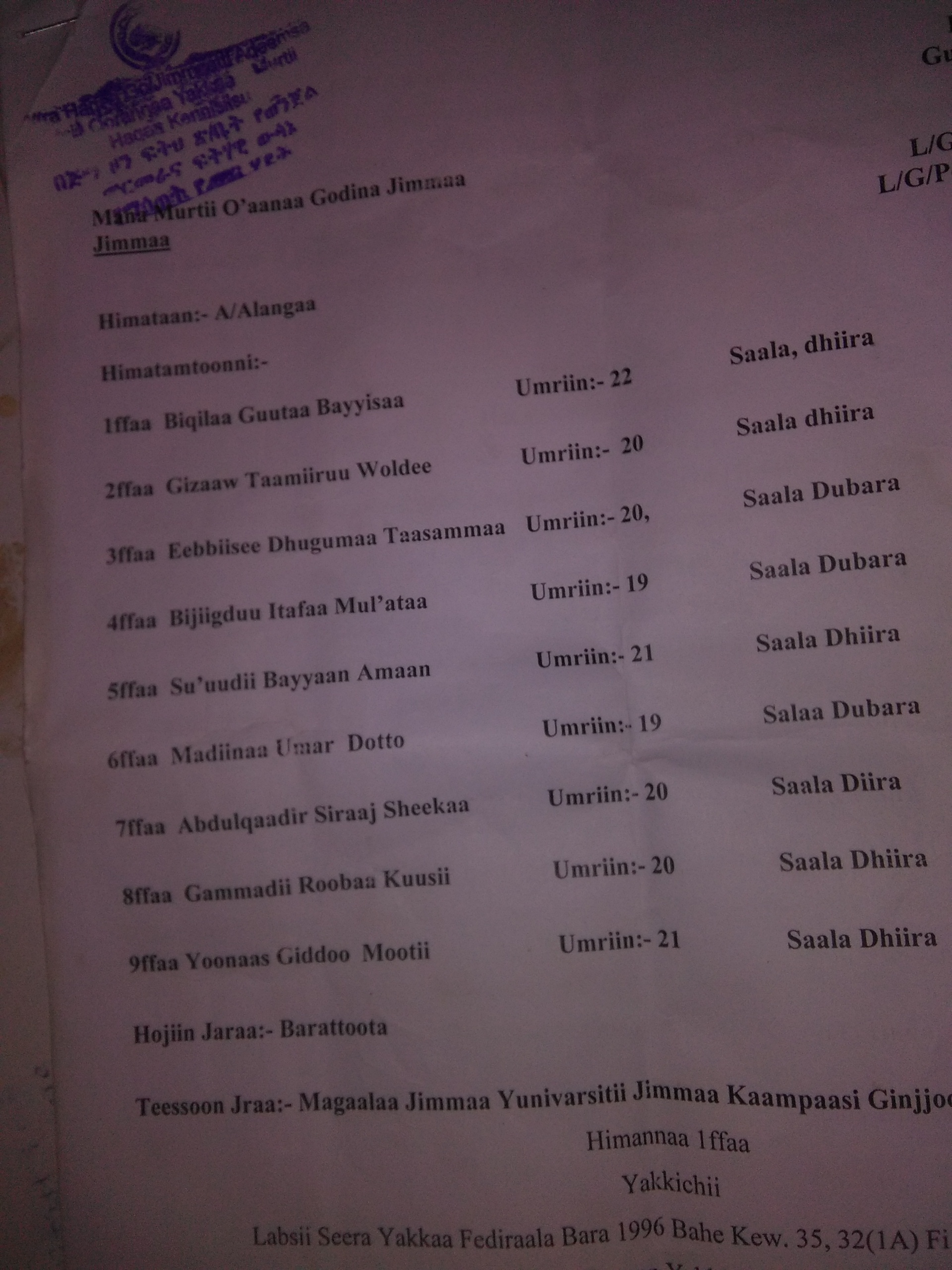 Ebala 1,2016 Mootummaan Wayyaanee Yakka Barattoota Oromoo Irratti Hojjetu Itti Fufuun Yuniverstii Jimmaa Keessatti Seeraa Ala Hiriira Mormii Baatan Jechuun Ragaa Sobaa Waammatee Adabbii Maallaqa Guddaa fi Murtii Hidhaa Barattootatti Murteessaa Jiraatu iyyuu FXG Itti Fufee Jira..