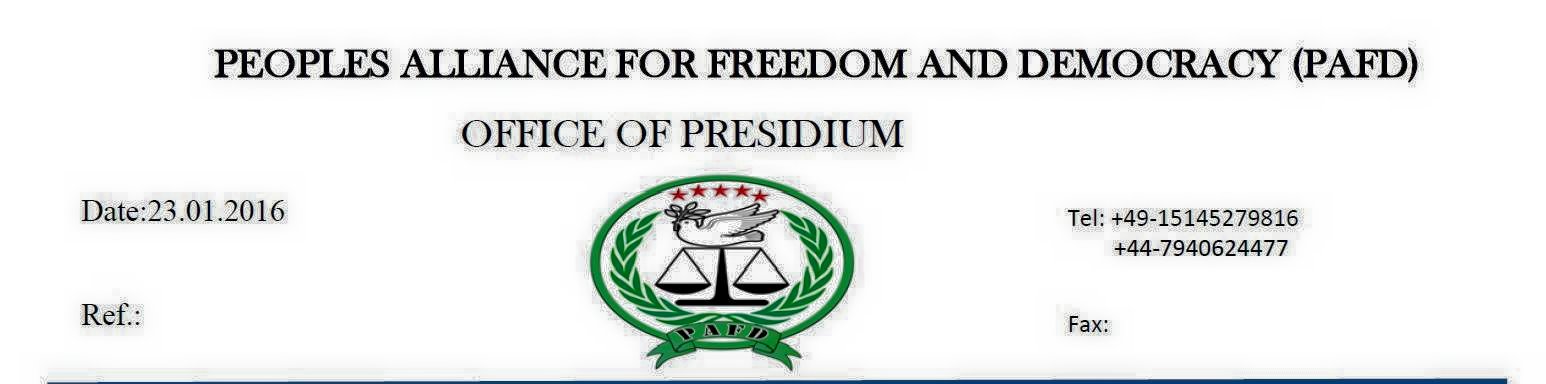 PAFD also believes that, there is no critical time than this one for Peoples in Ethiopia and political forces and thus urge to work with PAFD for positive and concrete steps towards transitional arrangement. PAFD believes in inclusive transitional government where all the peoples in Ethiopia shall have genuine representation and ability to take part in deciding their future destiny.