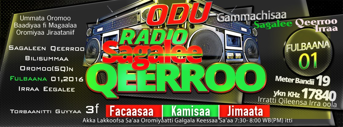 SQ-Sagalee Qeerroo Bilisummaa Oromoo Ebla 28,2017 Aside https://qeerroo.org/wp-content/uploads/2017/04/sq-28.mp3 Share this:https://www.gofundme.com/8bds2wgk Click to share on Gofundme (Opens in new window) Gofundme Click to share on X (Opens in new window) X Click to share on Facebook (Opens in new window) Facebook Click to share on qeerroo youtube (Opens in new window) qeerroo youtube Click to share on Qeerroo Video (Opens in new window) Qeerroo Video Click to share on sbo/abo (Opens in new window) sbo/abo Click to share on WhatsApp (Opens in new window) WhatsApp Click to email a link to a friend (Opens in new window) Email Click to share on Gadaa (Opens in new window) Gadaa Click to share on www.Ayyaantuu.org (Opens in new window) www.Ayyaantuu.org Click to share on Oromiapress (Opens in new window) Oromiapress Like Loading...